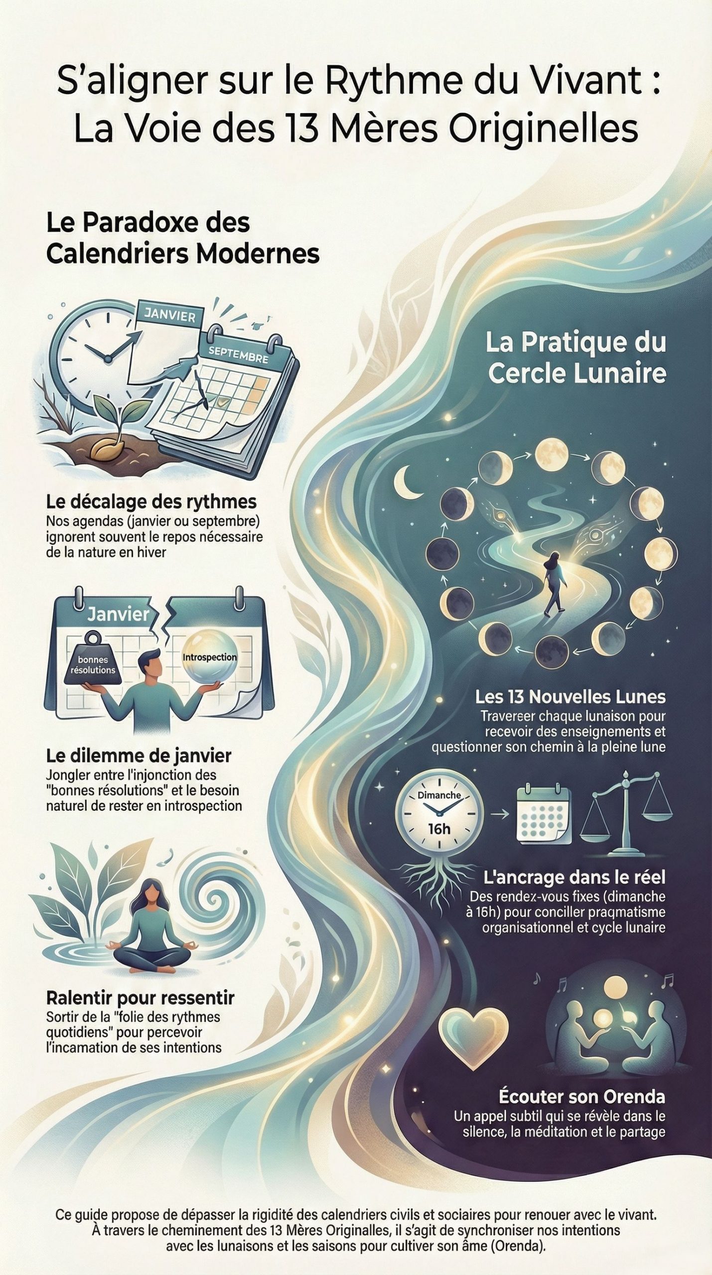 L’on sent un besoin d’autre chose (pas uniquement avec le calendrier) : de lien avec ce qui vit autour de moi, de temps longs, de retrouvailles, de connexion à nos cycles, de partages, de spiritualité et d’aller écouter son âme (avec les Gardiennes on parlera d’Orenda).